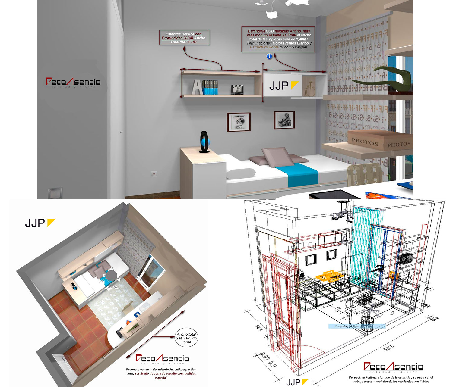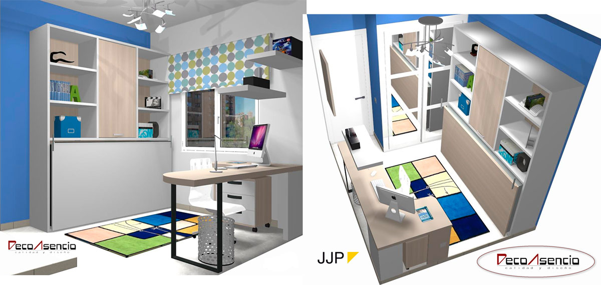 Whether it is a bedroom, a living room or any other type of room, Decoasencio allows you to create and decorate spaces tailored using high quality materials and can create environments that foster curiosity and are well received by young persons, adults and children. To achieve that you can take part in all phases of the design process, Decoasencio resorts to creativity and the design knowledge of our interior designers to propose solutions without a high cost.