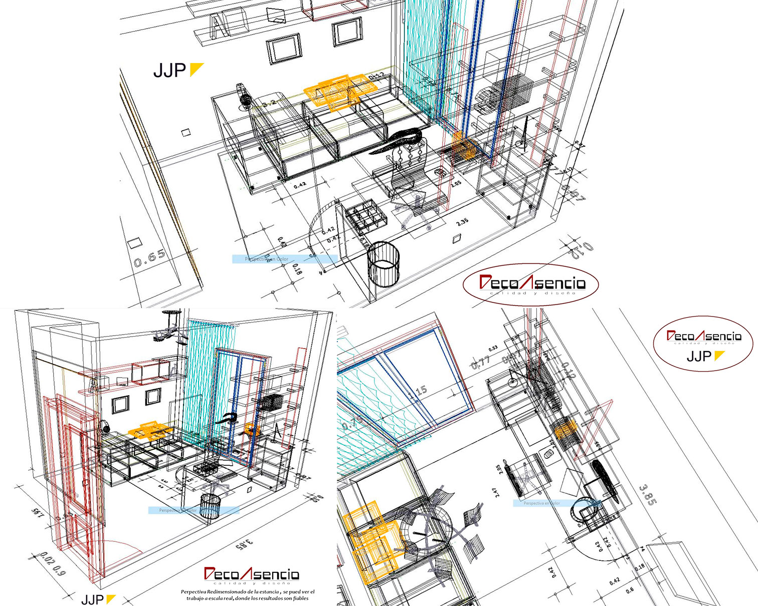 Decoasencio offers the client an original, different and personalized design service. This is based on extensive knowledge of interior design, an unique style, creative ideas and a very powerful and professional 3D design software that will allow you to, among other things, to see the project on a real scale with a level of photorealistic detail and from all the possible perspectives, displaying items of furniture with confidence and real measures.